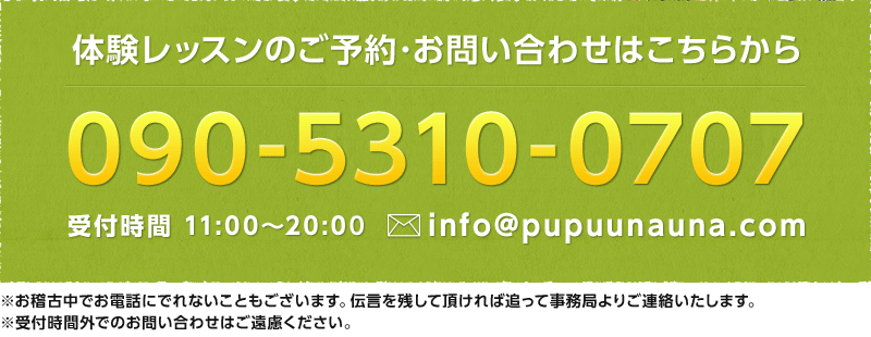 そんな初心者の方が安心してレッスンをして頂けるように、ププウナウナのレッスンは、ゼロから学べる基礎プログラムです。